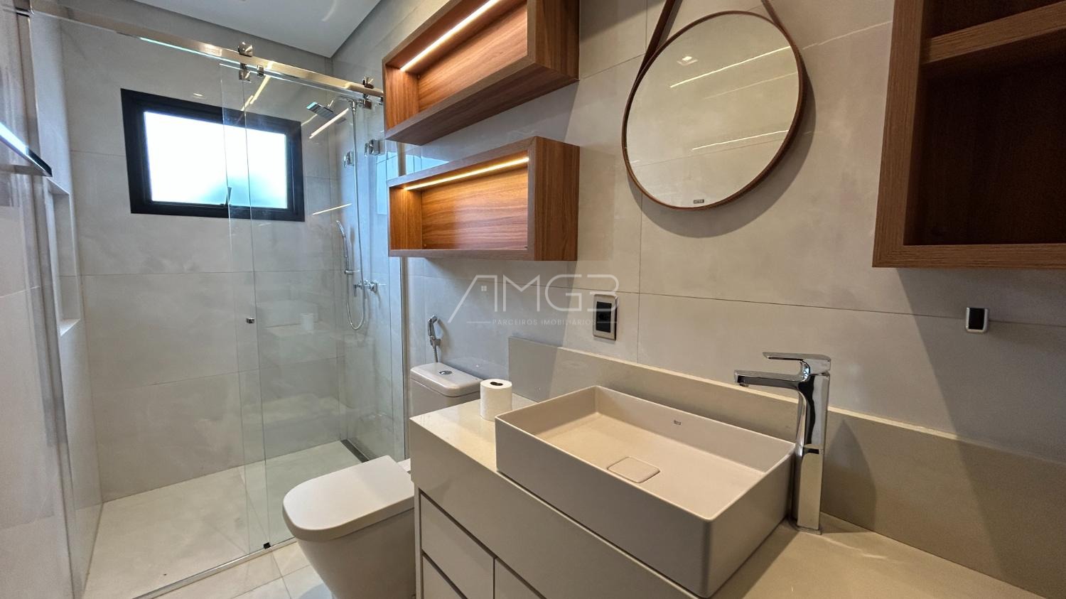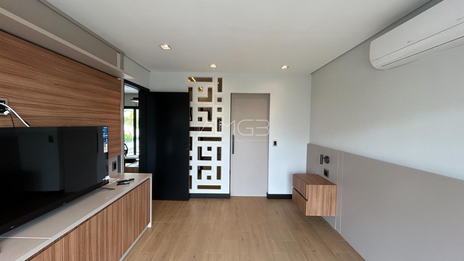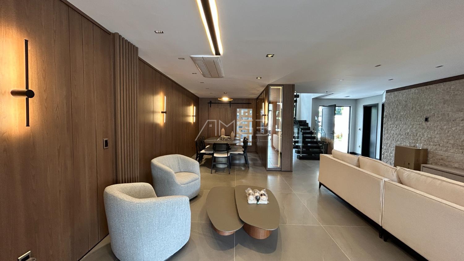 No piso inferior, dormitório/escritório com banheiro reversível, sala de TV, elegante sala de jantar com mesa para 8 lugares, além de adega/cristaleira com iluminação em LED.