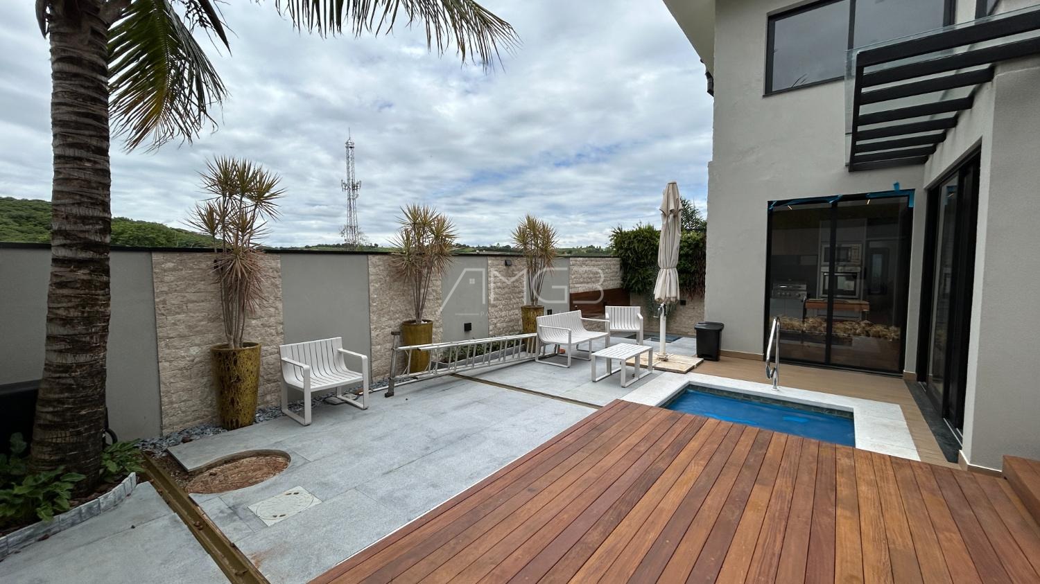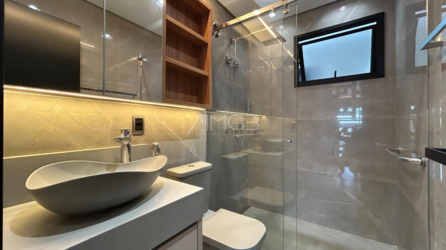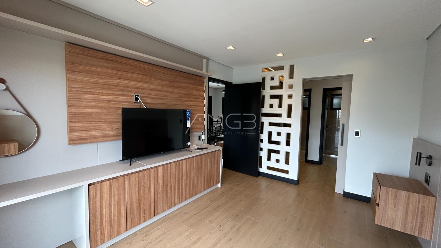 No piso inferior, dormitório/escritório com banheiro reversível, sala de TV, elegante sala de jantar com mesa para 8 lugares, além de adega/cristaleira com iluminação em LED.