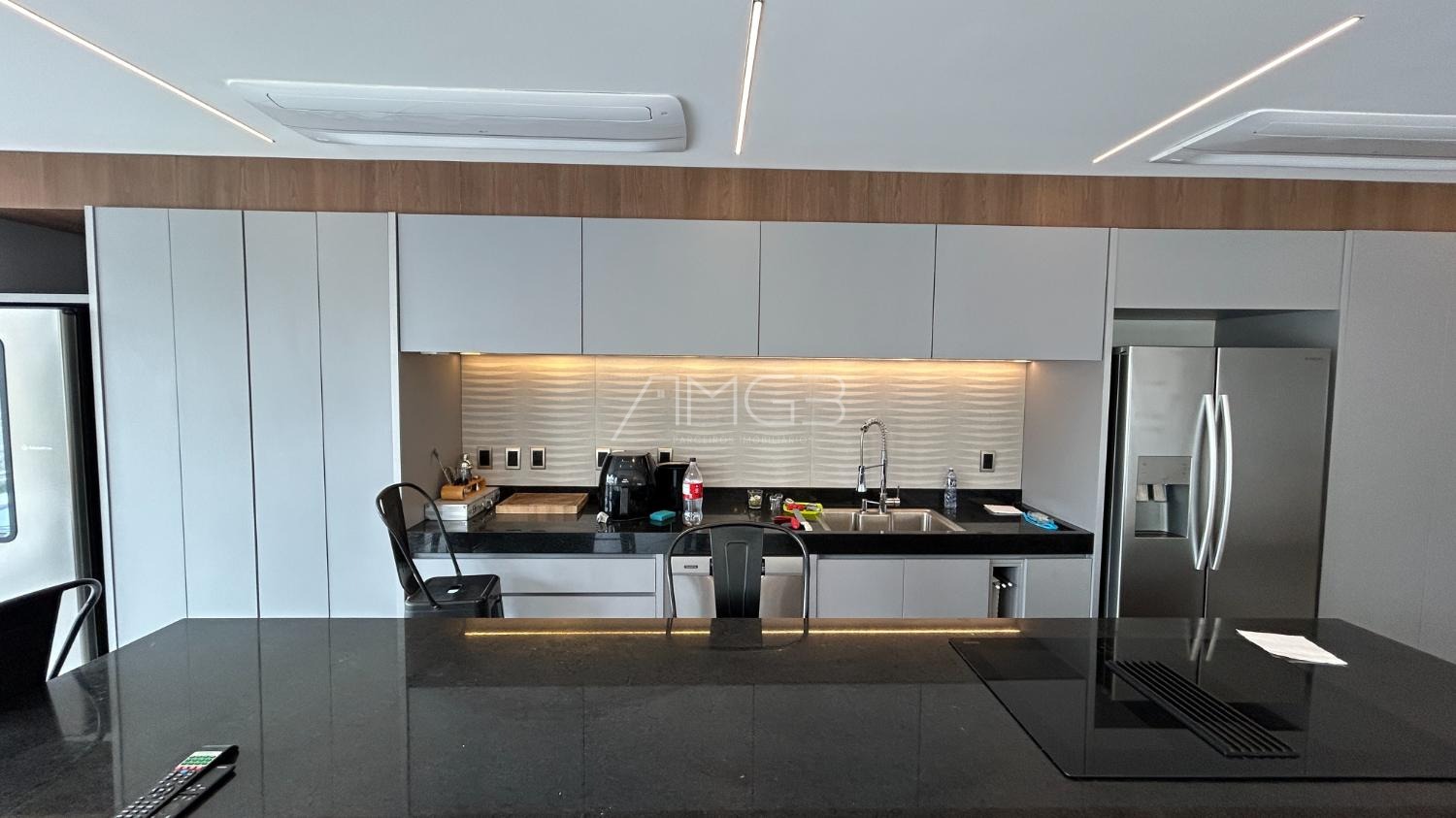 Cozinha americana ampla, equipada com eletrodomésticos de primeira linha, integrada à churrasqueira a gás, garantindo praticidade e sofisticação. Lavanderia com acesso externo, varal e amplo armário/depósito.