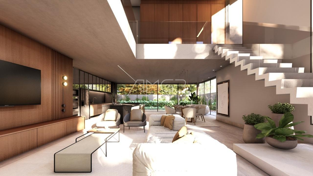 Linda casa para venda no Swiss Park Campinas, serão 417,38m² de construção, 4 amplas suítes, escritório, amplo living com pé direito duplo para sala de estar e jantar, cozinha planejada com despensa, além da área gourmet com churrasqueira e piscina.