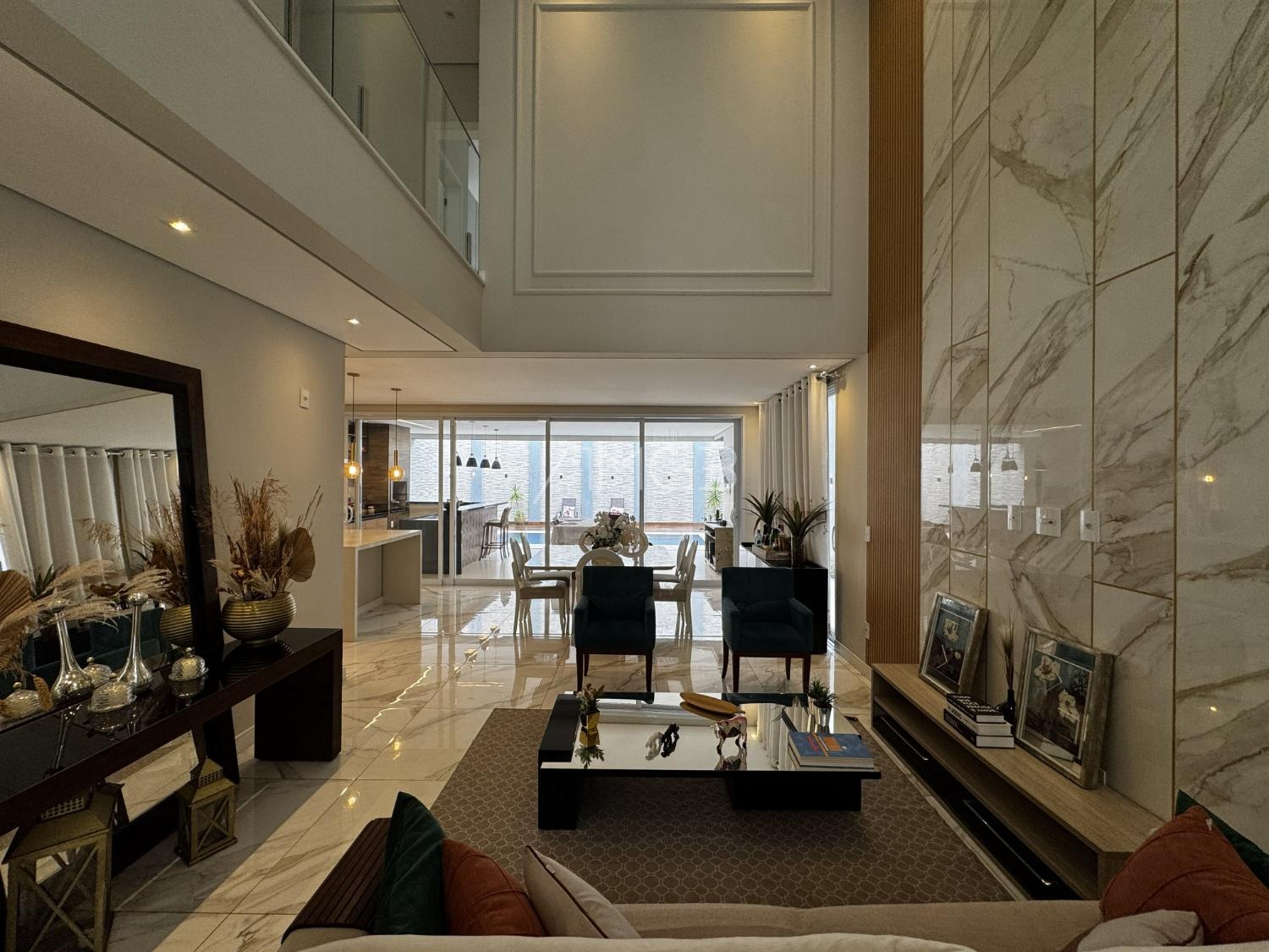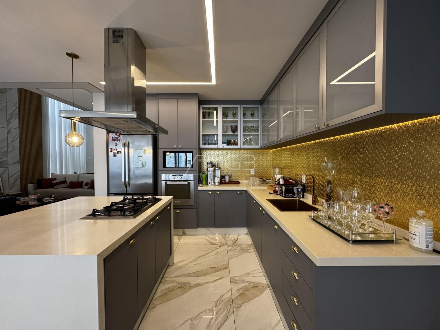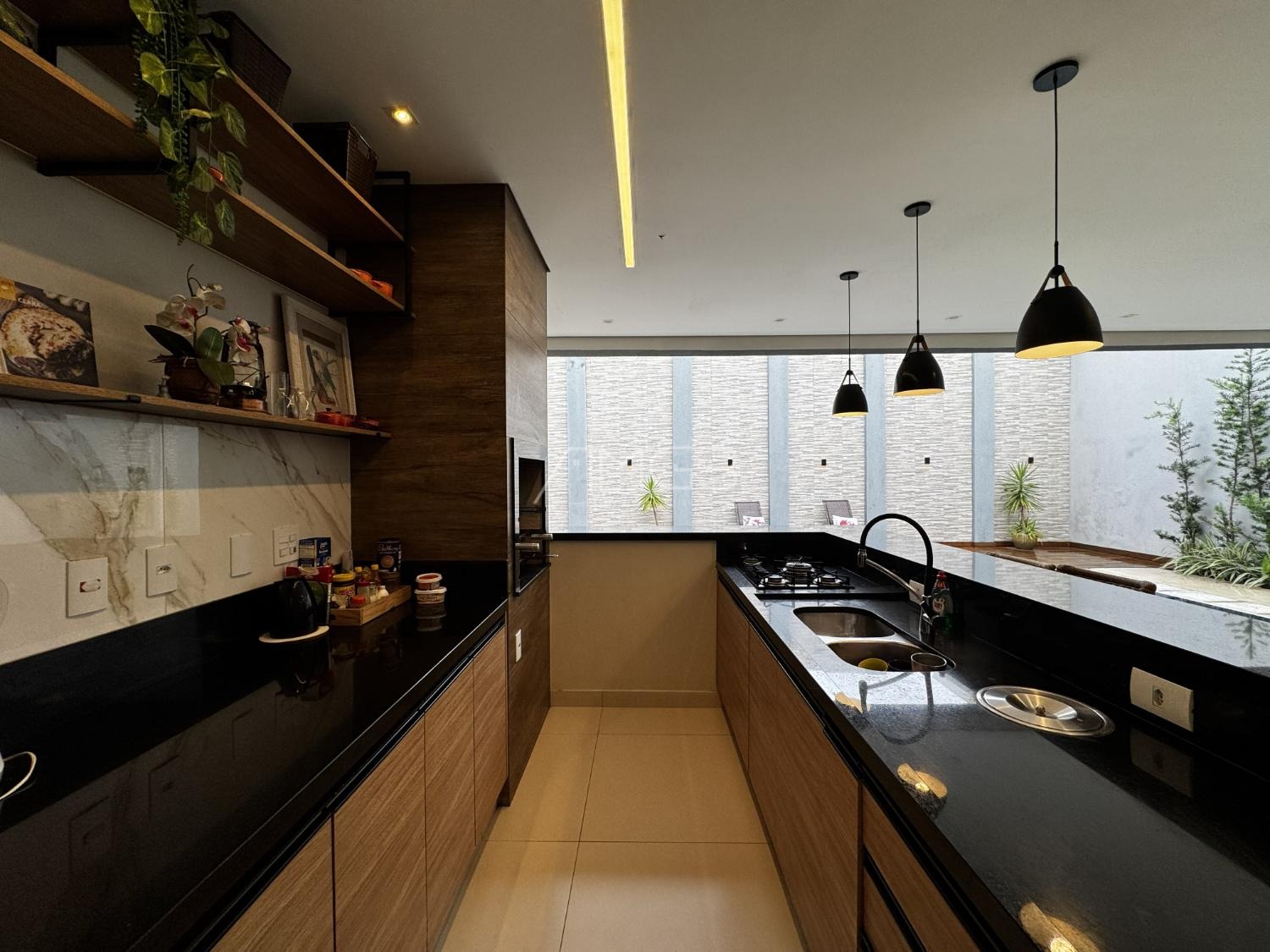 Amplo living para sala de estar e jantar com pé direito duplo, cozinha ampla e totalmente planejada, com coifa e cooktop, além da despensa. Área gourmet também equipada com churrasqueira, planejados, banheiro externo e piscina!