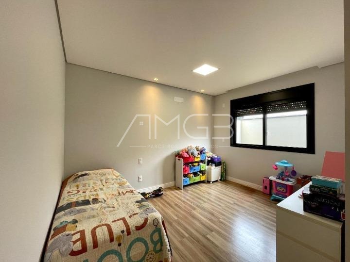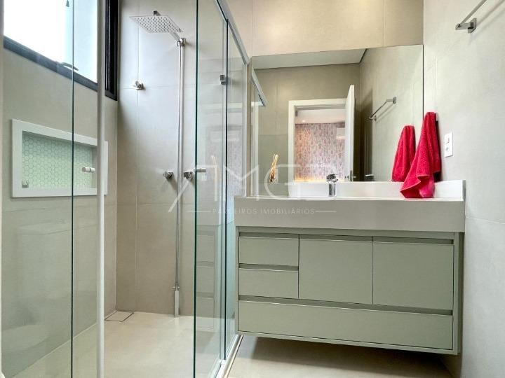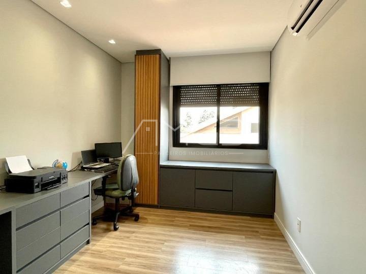 Casa com 362m² de área construída, 4 suítes, banheiro, lavabo, escritório e varanda gourmet. Possui ainda área de serviço, despensa, varanda, sala de estar e jantar.