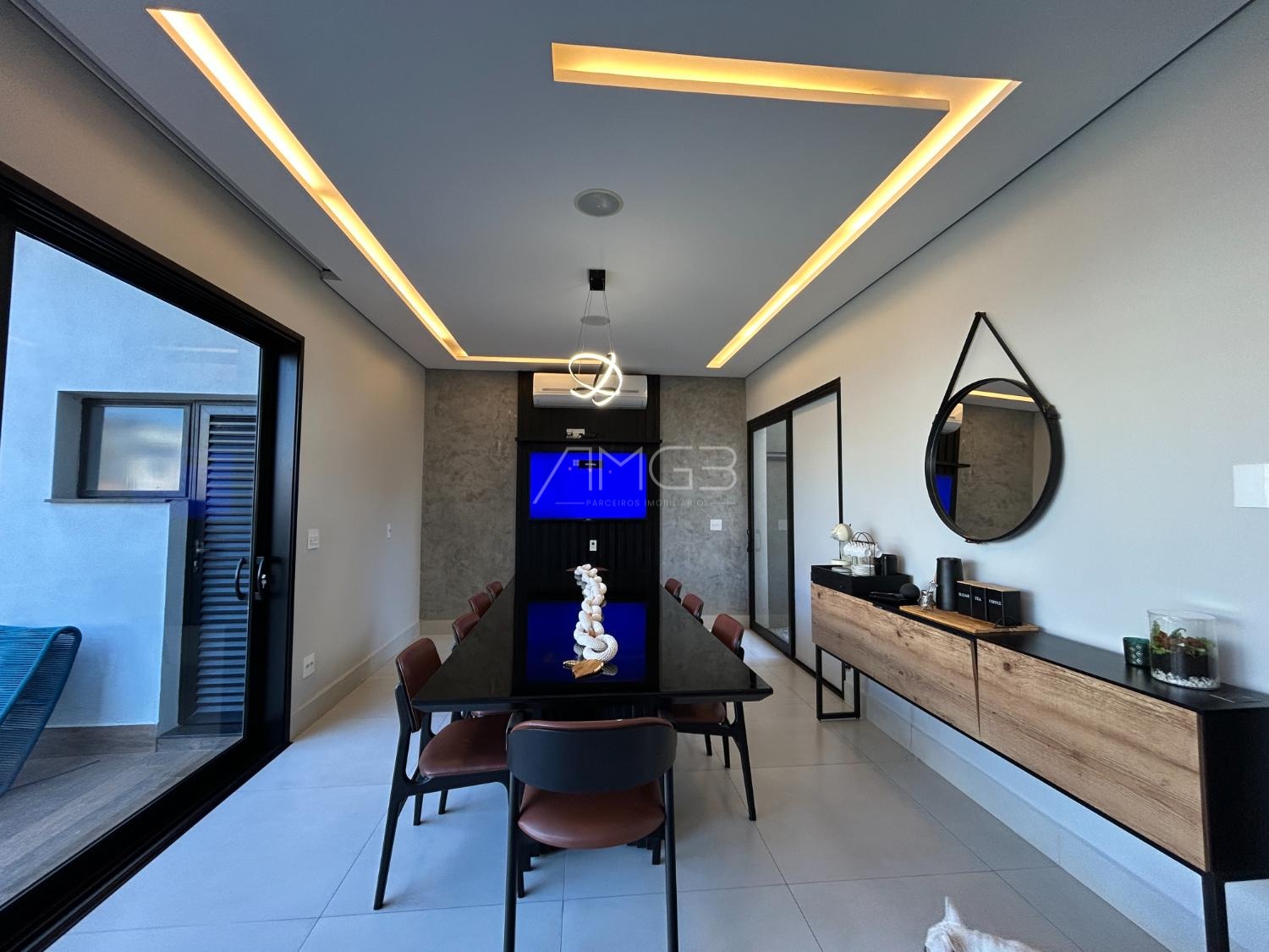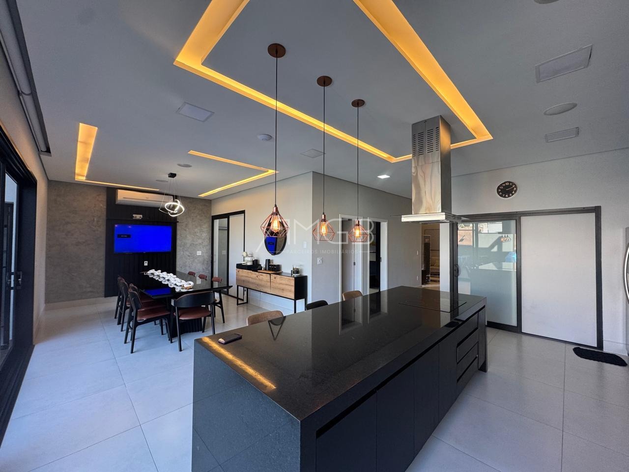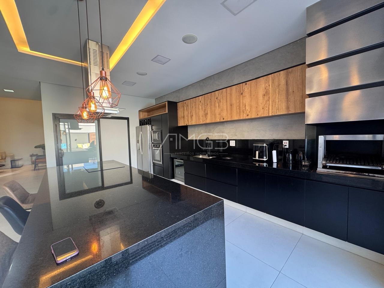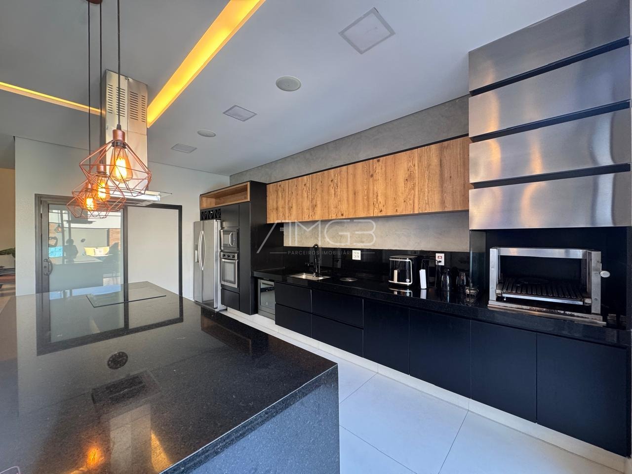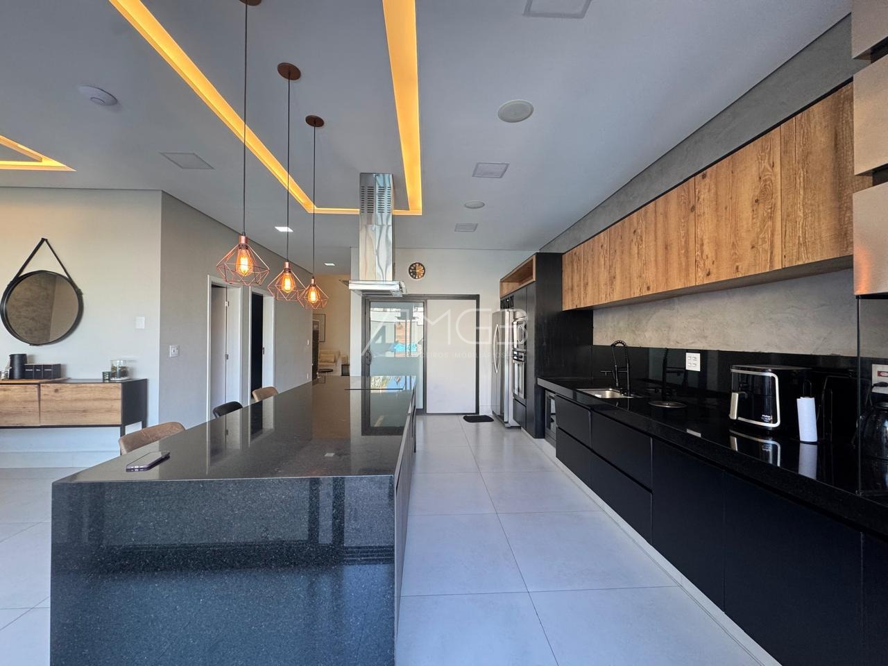 São 3 suítes, 5 banheiros e duas salas, com living de pé-direito duplo e ótima iluminação natural. A área social integra sala de estar, jantar e TV à cozinha americana equipada, com cooktop, coifa e armários planejados.