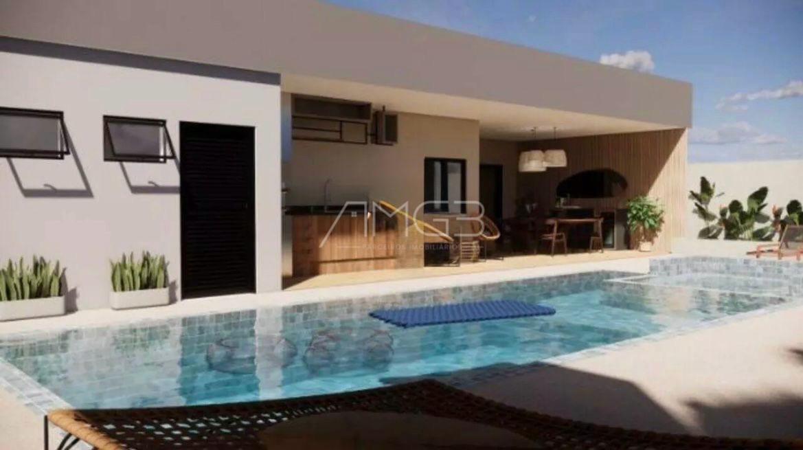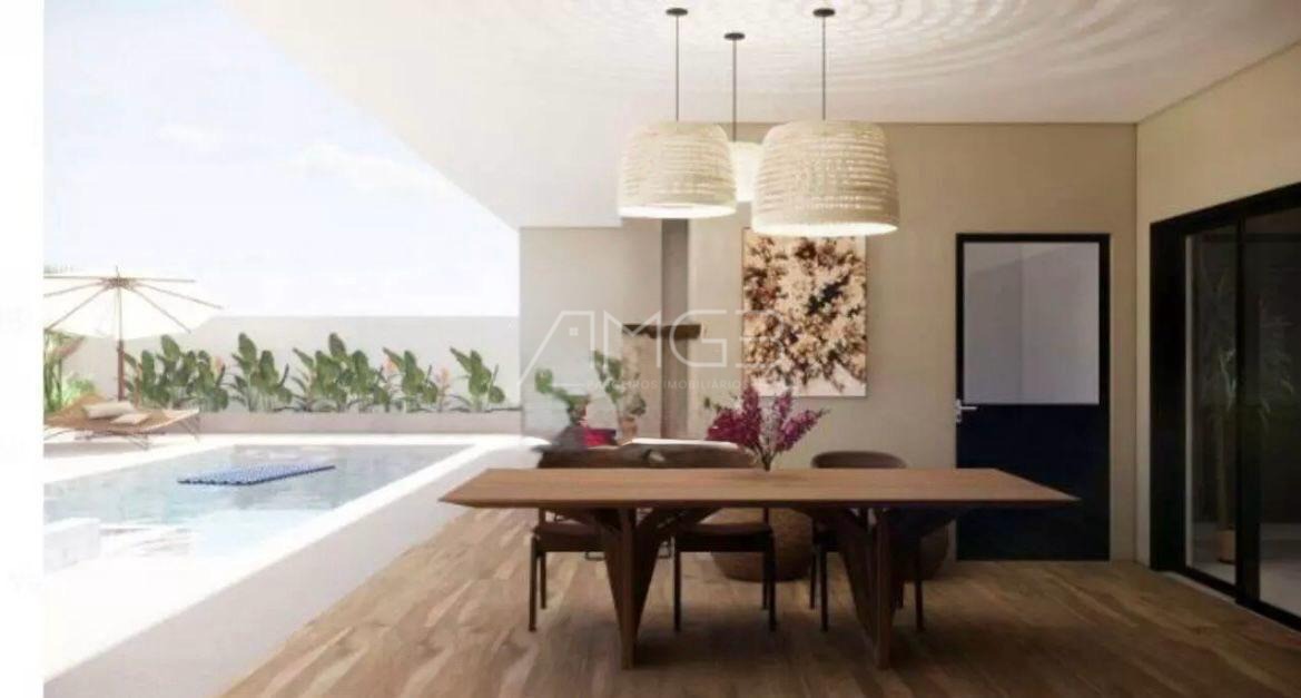 Residência térrea com excelente padrão construtivo, ampla sala com pé-direito alto integrada à cozinha planejada e à varanda gourmet, oferecendo conforto e ótima iluminação natural.