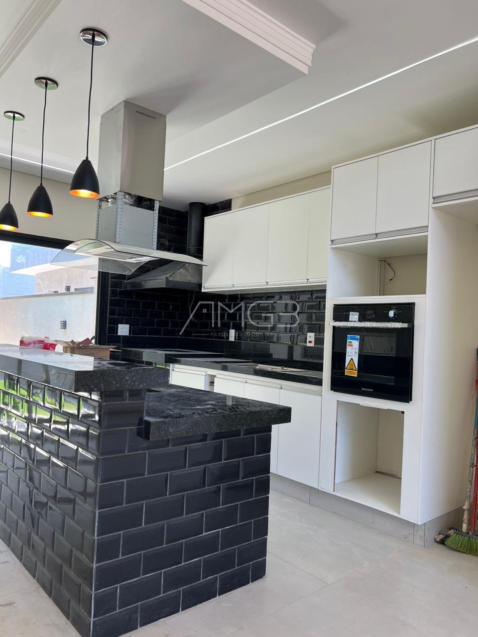 O imóvel conta com 3 suítes, escritório e closet, além de armários planejados que garantem praticidade e organização no dia a dia. O pé-direito duplo valoriza os espaços e proporciona ainda mais sensação de amplitude. A cozinha é equipada com forno, cooktop e lava-louças, integrada aos ambientes sociais e à área com churrasqueira, ideal para momentos de lazer.