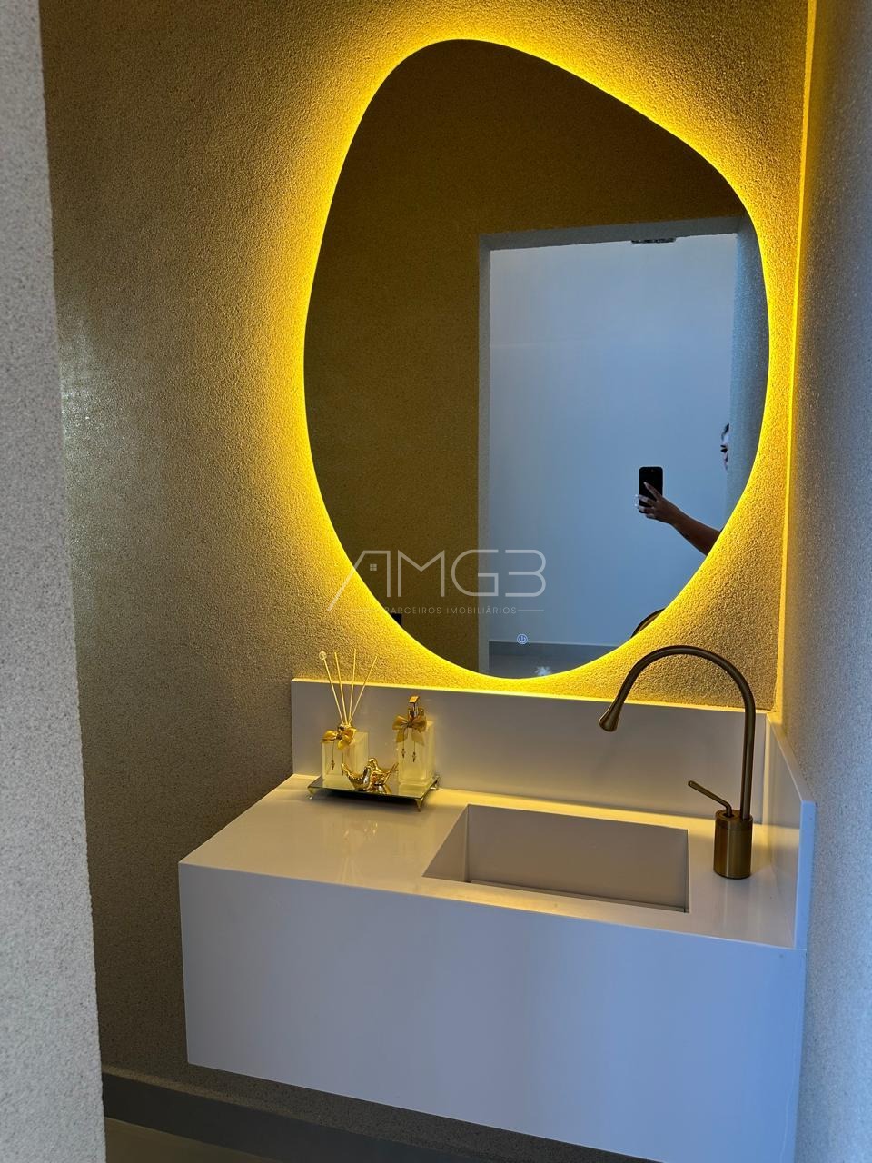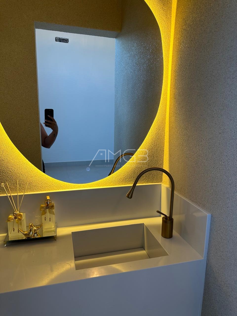 Dispõe ainda de lavabo revestido inteiramente em pedra natural, agregando sofisticação e durabilidade. A cozinha é totalmente planejada, oferecendo praticidade e ótimo espaço de armazenamento, integrada a uma área gourmet planejada, ideal para momentos de lazer e convivência.