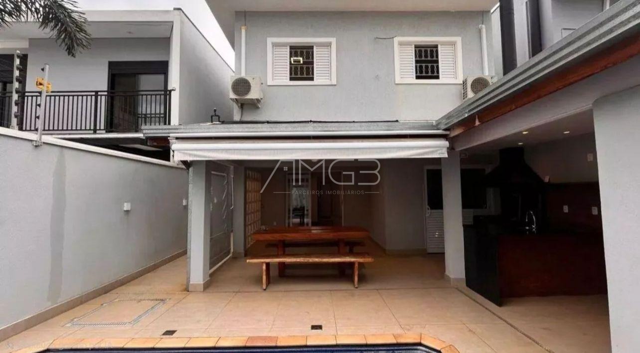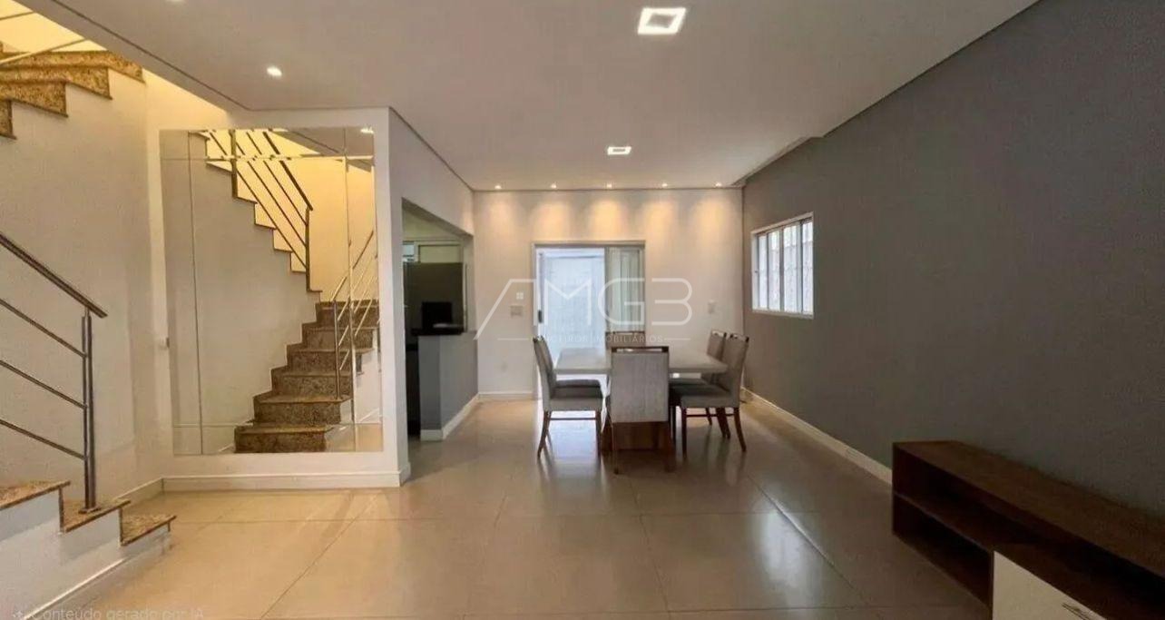 Na área íntima, a casa oferece três dormitórios, sendo uma suíte, todos com armários embutidos e ar-condicionado, garantindo conforto e organização. Ao todo, o imóvel possui três banheiros, atendendo perfeitamente às necessidades da família.