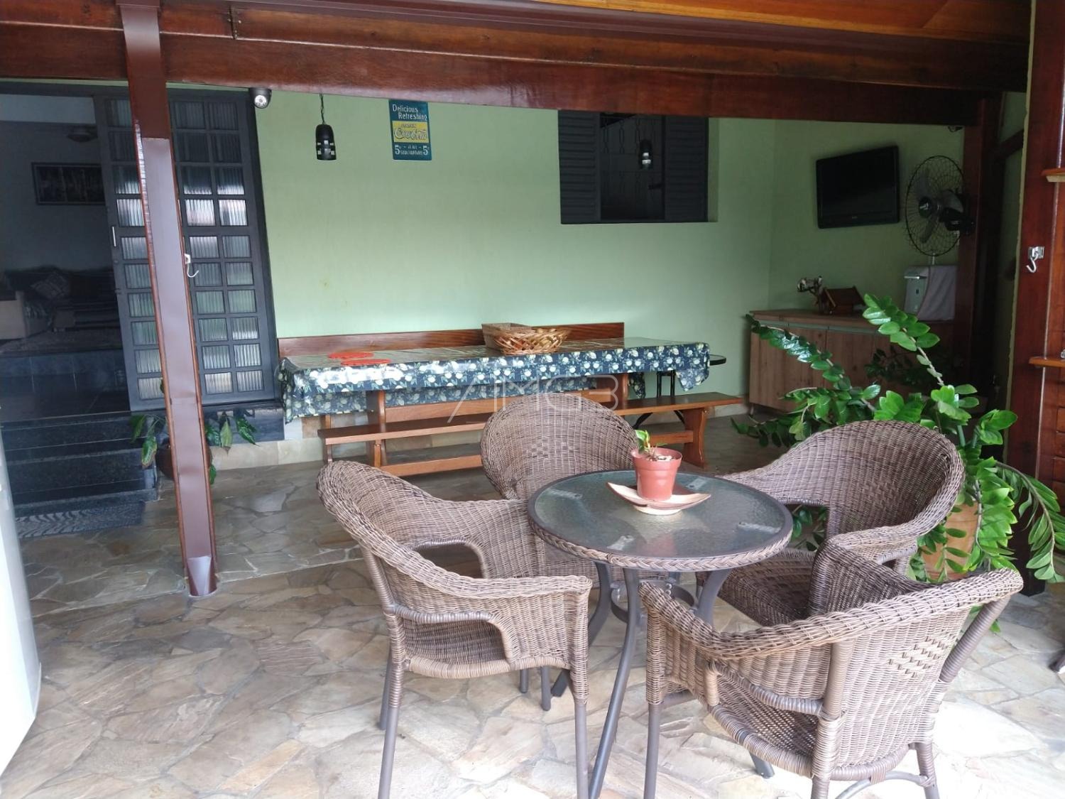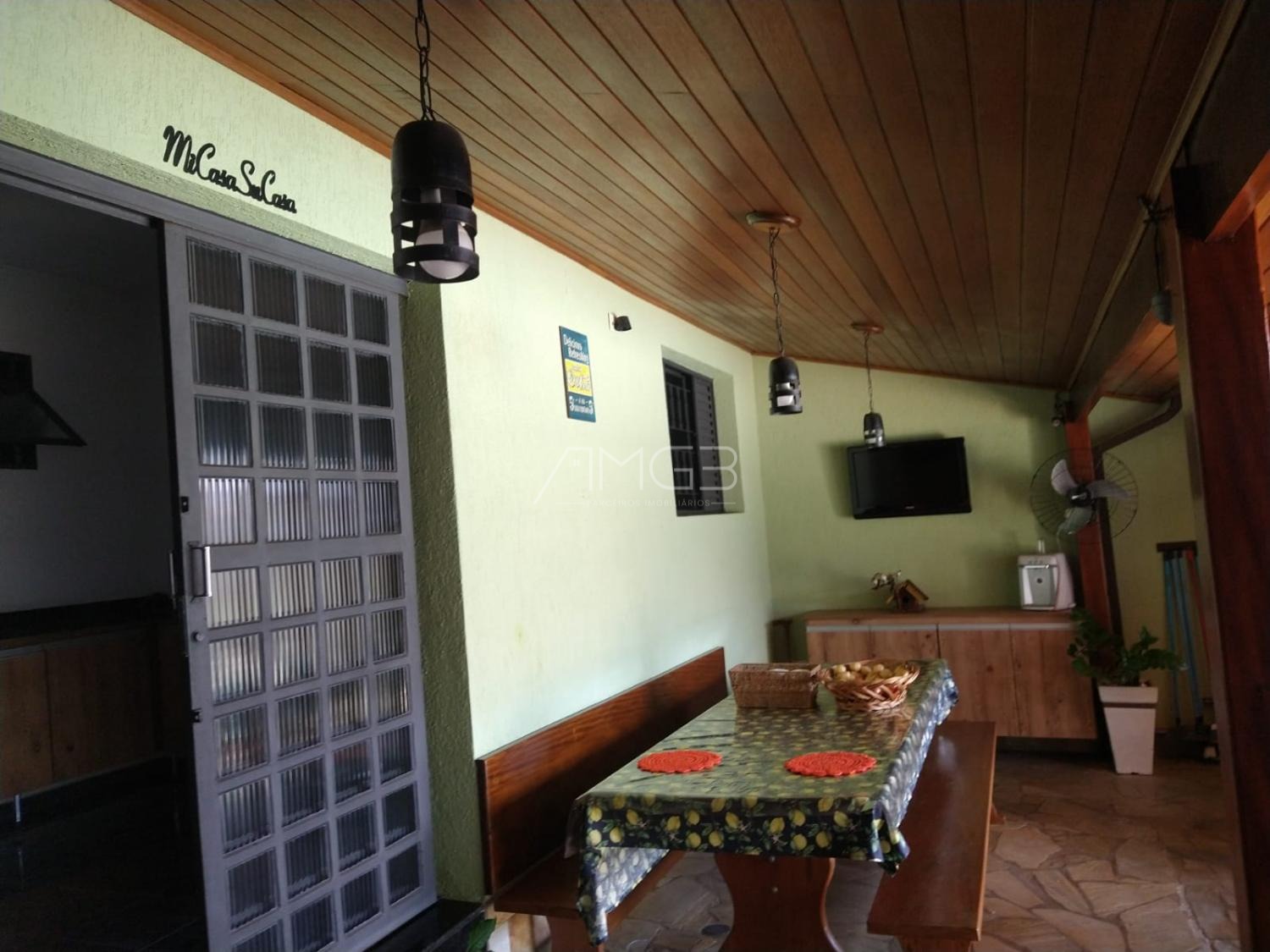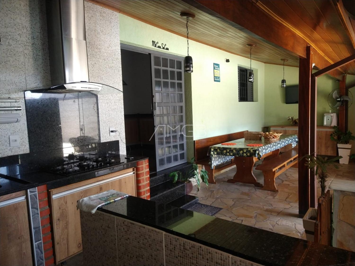 A propriedade conta ainda com duas cozinhas, uma delas equipada com área de churrasqueira, ideal para momentos de convivência e lazer com familiares e amigos. Há também uma área de serviço independente, proporcionando maior organização no dia a dia. A residência dispõe de uma sala de estar aconchegante e duas salas de jantar amplas, que possibilitam diferentes configurações para receber convidados ou criar ambientes distintos.