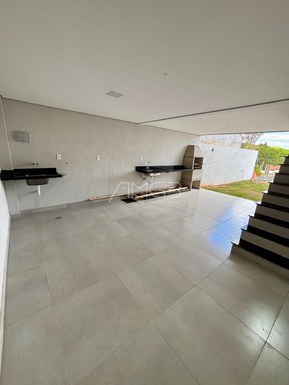 A área gourmet está localizada no subsolo e oferece pia, espaço para churrasqueira, área verde, lavabo e lavanderia coberta, ideal para momentos de lazer.