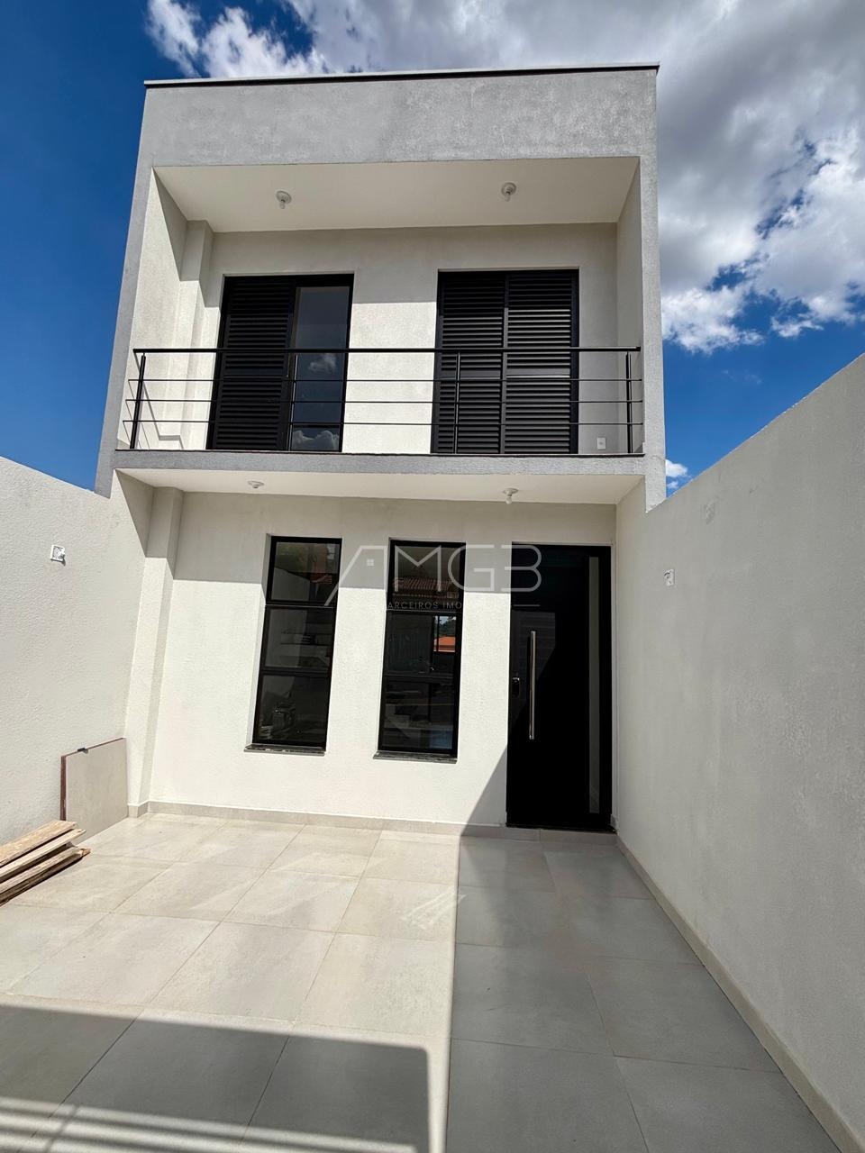 A casa conta também com garagem para 2 veículos e portão basculante preparado para automação.