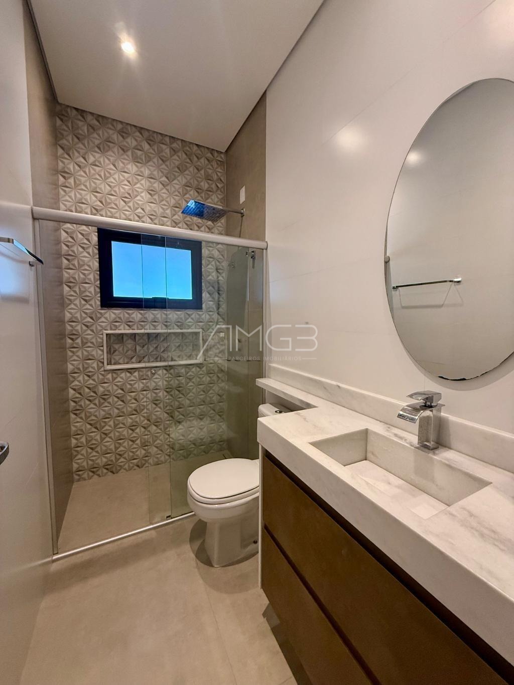 Na área externa, destaque para a piscina e o espaço gourmet com churrasqueira, perfeitos para momentos de lazer. Localizada em condomínio isolado, garantindo mais privacidade e segurança, a casa dispõe de 5 banheiros no total e 3 vagas de garagem, sendo 1 coberta.