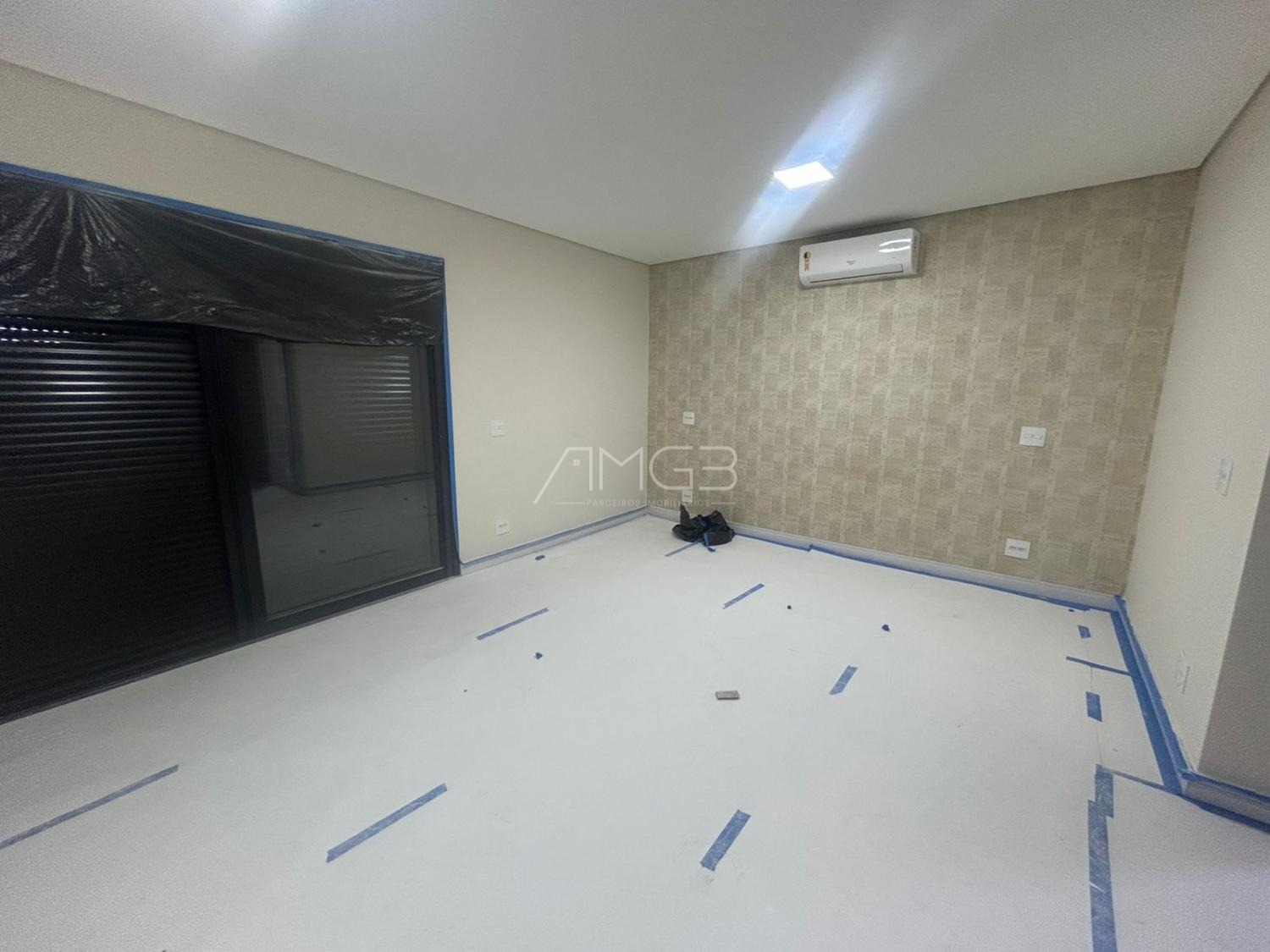 O projeto contempla três amplas suítes no pavimento superior, todas com closet e ar-condicionado, além de uma aconchegante sala íntima. No térreo, o imóvel conta com uma suíte reversível, ideal para hóspedes ou home office.