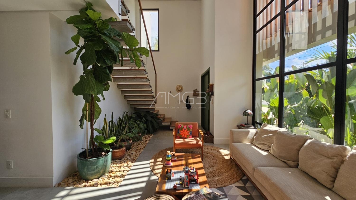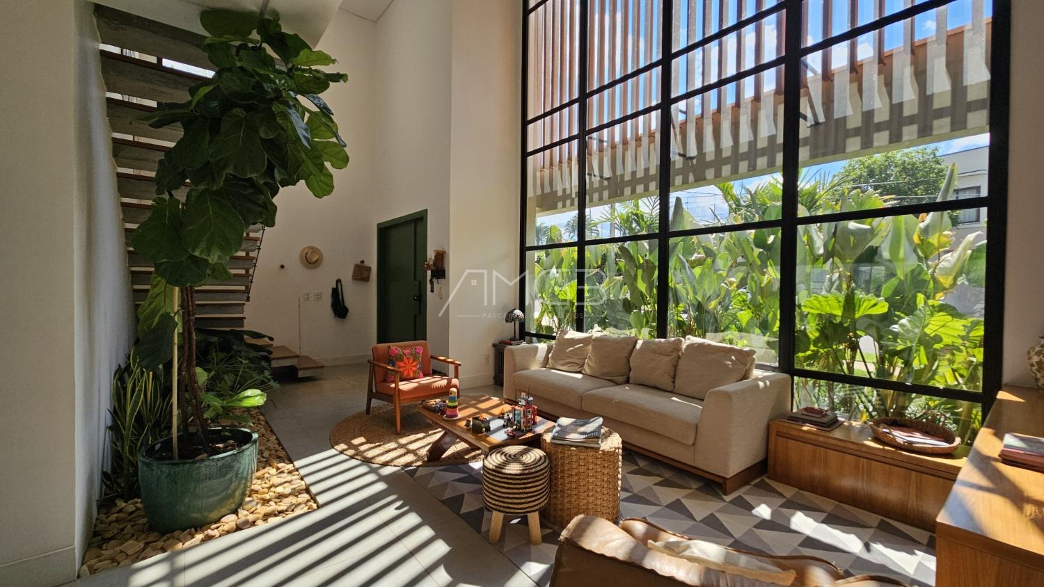 Com 255 m² de área construída em um terreno de 430 m², o sobrado foi projetado para oferecer amplitude e integração entre os ambientes.