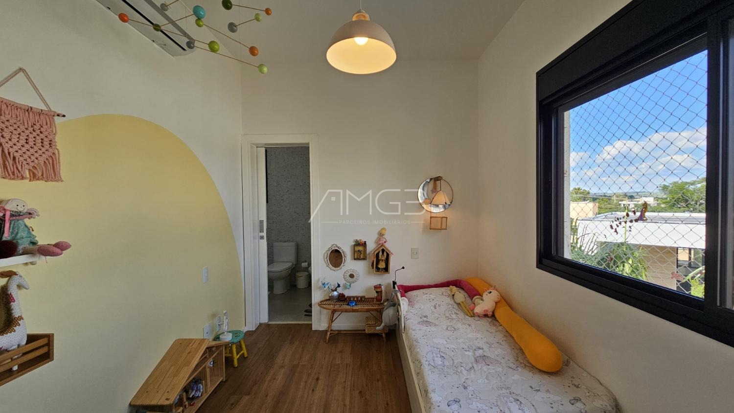 No piso superior, são 3 suítes completas, incluindo uma suíte máster com amplo closet. Todas contam com ar-condicionado, garantindo conforto em todas as estações.