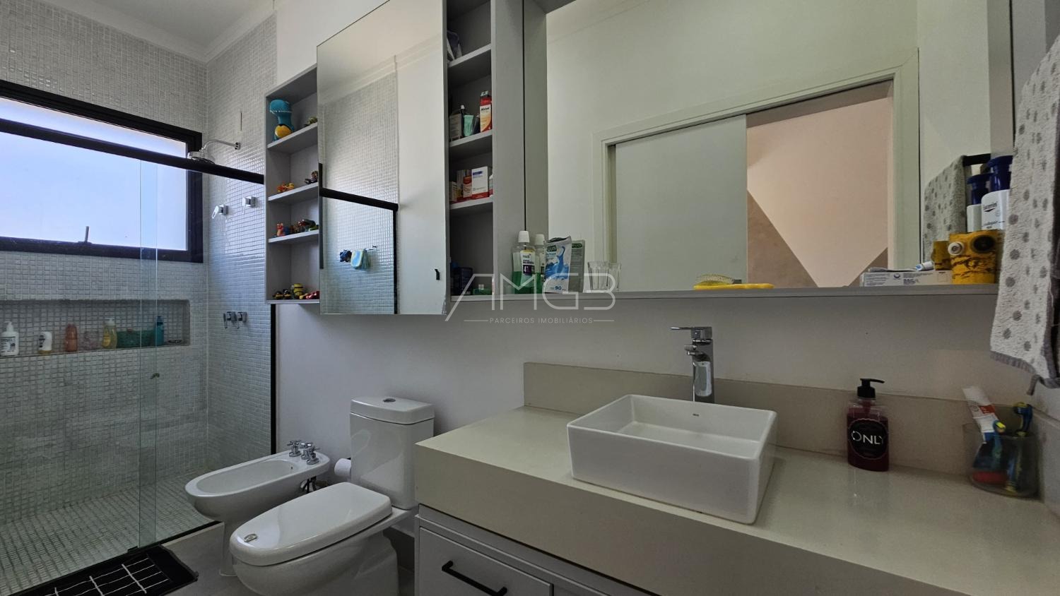 O imóvel oferece também escritório privativo, sala de home theater e banheiro completo no térreo, possibilitando a adaptação de um desses espaços para uma 4ª suíte, conforme a necessidade.