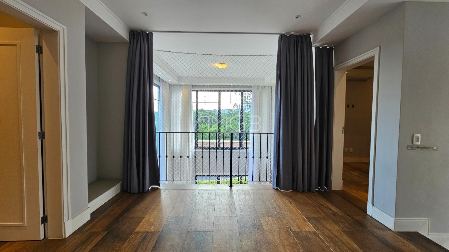 No pavimento superior, a casa dispõe de uma sala íntima ideal para home theater, além de 4 amplas suítes, todas com closet. A suíte master se destaca pela sacada e pelo banheiro espaçoso, com duas cubas e duas duchas.