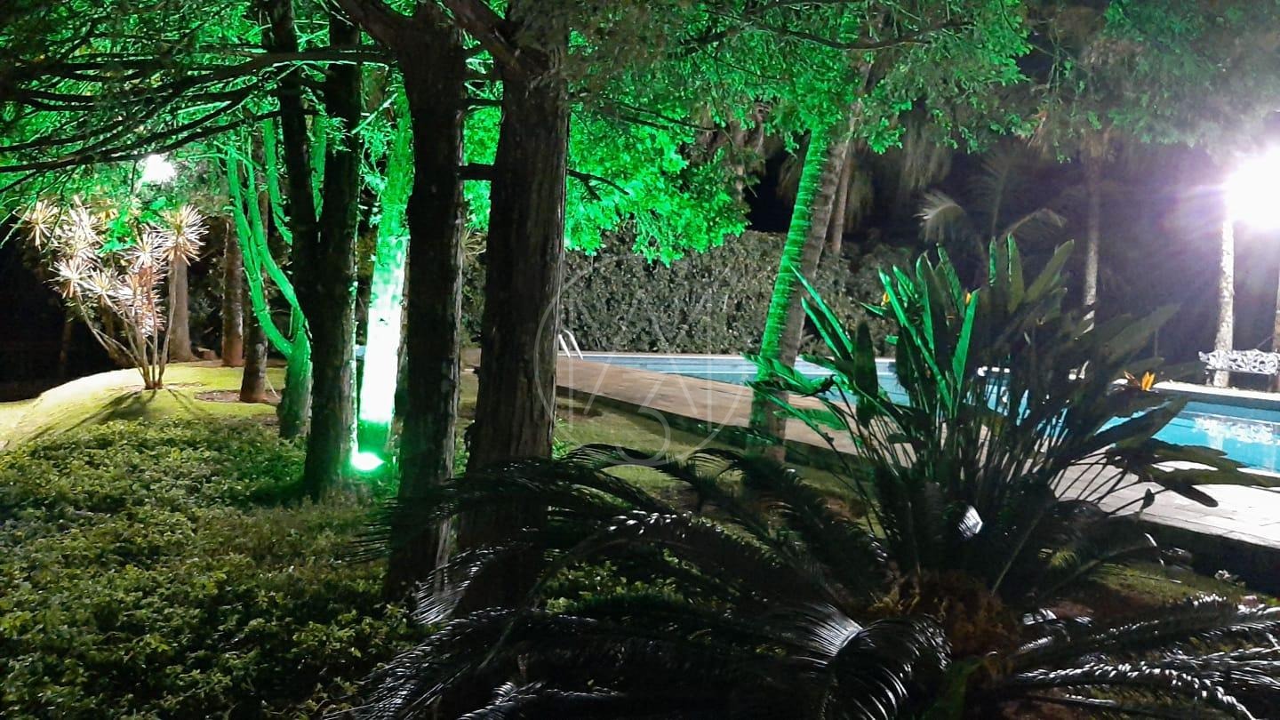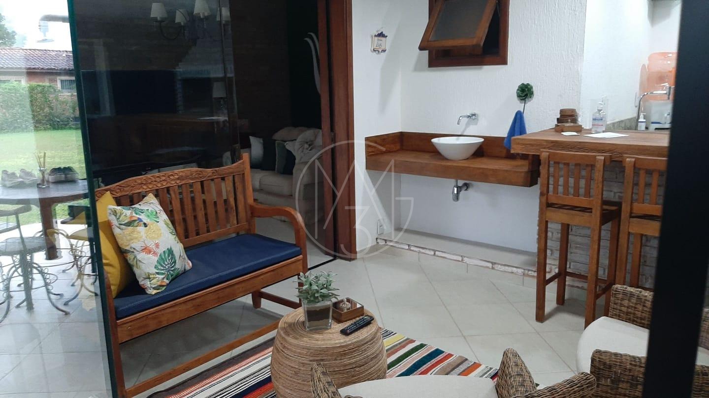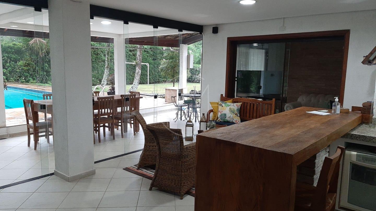 Possui 3 suítes, escritório, 6 vagas de garagem, piscina com raia, gazebo, amplo jardim arborizado, beach quadra, cozinha com armários planejados, deliciosa varanda com vista para o jardim, espaço gourmet com churrasqueira, tranquilidade e segurança para você e sua família.