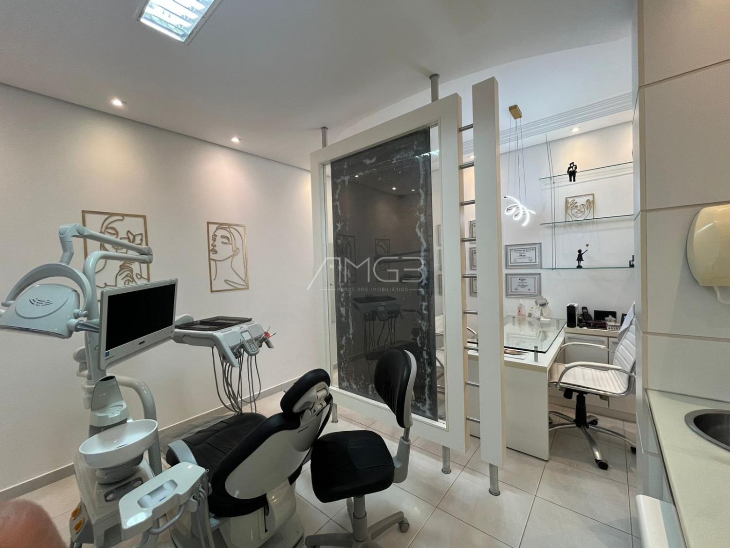 1 de aproximadamente 25 m² recepção sala de espera ampla 3 banheiros sendo 2 na recepção com 1 adaptado para cadeirante 1 próximo à cozinha.