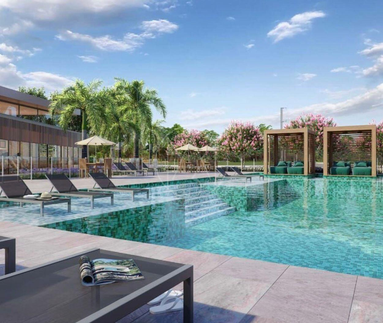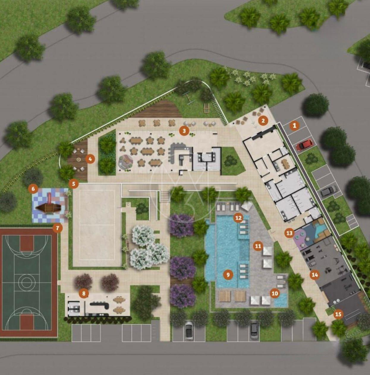Condomínio será entregue com academia, segurança, portaria, piscina, quadra poliesportiva, vestiário, playground. Data prevista de entrega: 02/2027.